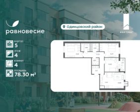 Указанная акционная стоимость доступна при 100% оплате или ипотеке без субсидирования. Цена действует до 19.01.2026 23:59:00. Стоимость без акции 19762920.Продаётся квартира с 4 комнатами общей площадью 78.30 кв. метров на 4 этаже жилого квартала комфорт-класса ''Равновесие''.На территории комплекса будет возведен детский сад на 360 мест, а на первых этажах жилых домов откроются кафе, магазины и все необходимое для удобства жителей.Локация ''Равновесия'' выделяется среди других пригородных ЖК разнообразием быстрых маршрутов до Москвы. Для автомобилистов преимуществом станут удобные выезды на Можайское шоссе, Рублёво-Успенское шоссе, Минское шоссе с платной трассой и другие. Также в пешей доступности находятся две ж/д станции — ''Жаворонки'' и ''Здравница''. Дорога на электропоезде до делового центра ''Москва-Сити'' составит всего 35 минут.Особенности ЖК:- Малоэтажная застройка: 4-6 этажей,- Благоустроенный пешеходный бульвар,- Пространства для отдыха и спорта,- Квартиры с террасами на последних этажах,- Квартиры с отдельным входом на первых этажах,- Внутренняя территория квартала свободна от машин,- Безбарьерная среда,- Помещения для хранения детских колясок и спортивного инвентаря.