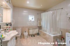 ID_214822 Преимущества: Новый современный домУчасток с вековыми лесными деревьямиПанорамное остеклениеВсе спальни с санузламиВысота потолков 3,6 метраЭксплуатируемая кровляСтародачный посёлок в окружении лесаГородская инфраструктура в шаговой доступностиДом: Современный функциональный дом с панорамными окнами и эксплуатируемой крышей на участке с вековыми деревьями. Дом полностью готовый к проживанию. Внутренняя отделка дома выполнена в современном стиле в светлых тонах. Высокие потолки увеличивают пространство в помещениях дома. Бесшумная монолитная межэтажная лестница с подсветкой на ступенях. Полы покрыты керамогранитом и ламинатом, установлен регулируемый теплый пол по всему первому этажу, на втором этаже в санузлах. КОНСТРУКТИВ: Дом построен в 2020г. Фундамент ленточный с утепленной монолитной плитой, стены монолитный каркас, заполненный пенобетонным блоком, перекрытия - ж/б плиты, лестница - монолит. Эксплуатируемая кровля- монолитная плита 20 см, утепление пеноплекс 150 мм, стяжка, разуклонка, двойная гидроизоляция. Высота потолков 1 этаж - 3.3м, 2 этаж - 3.2м.Планировка: Продуманное расположение комнат на первом и втором этажах, позволит без стеснения разметить всех членов семьи и гостей. 1 этаж: Прихожая, столовая-гостиная с выводом под камин, с панорамными окнами и выходом на террасу, кухня, кабинет/спальня, санузел.2 этаж: Мастер-спальня с гардеробной, ванной комнатой и выходом на балкон, спальни со своим санузлом, спальня с выходом на балкон, гардеробная. Эксплуатируемая кровля: приспособлена для размещения площадок для занятий спортом, отдыха, соляриев, также можно оборудовать зеленую зону с цветником. Котельная имеет отдельный вход.Инженерия: Теплые полы по всей площади 1-го этажа и в санузлах и 2-го этажа. В котельной установлен газовый котел, система фильтрации и накопления воды. стеклопакеты Rehau, вся инженерная сантехника качественная известных производителей.Участок: Участок в хвойном лесу с многолетними соснами. Выполнен дренаж вокруг дома, а также сделана отмостка. Участок огорожен по периметру, посеян газон, площадка на два автомобиля. Автоматические ворота, видеонаблюдение по периметру дома.Безопасность: Видеонаблюдение. Возможность подключения охранной системы.Инфраструктура: Стародачный обжитой поселок с развитой инфраструктурой и очень удобной транспортной доступностью. В шаговой доступности вся городская инфраструктура г. Апрелевка: детский сад, школа, сетевые магазины, торговый центр, рынок, аптека, банк, поликлиника, больница, спортивный комплекс с бассейном.Транспорт: Прямой выезд на Киевское шоссе, 25 мин без светофорного движения до МКАД, в шаговой доступности от поселка находиться остановка общественного транспорта. Удобное транспортное сообщение - ж/д станция Апрелевка, маршрутное такси и автобусы до станций м. Юго-Западная, Румянцево и Саларьево.Коммуникации: Подключены все коммуникации: магистральный газ, электричество, автономная канализация, водоснабжение (колодец на 14 колец), высокоскоростной интернет (оптоволокно).Документы: Дом и участок в собственности, 1 взрослый собственник. Прописка - Московская область. Зарегистрированных лиц в доме нет.