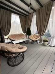 СНТ ''Электрон'', МО Апрелевка.25 минут на машине от МКАД по Киевскому шоссе. Железнодорожная платформа ''Дачная'' 5 минут пешком. Сдается в долгосрочную аренду уютный деревянный полностью меблированный дом площадью 150квм на облагороженном участке 9 соток. Функциональная планировка:1 этаж: коридор, котельная, постирочная зона, санузел с душевой кабиной и кладовой комнатой, гостевая спальня, гостиная и кухня- столовая с выходом на крытую веранду и участок. 2 этаж: 3 спальни, санузел с ванной и душевой кабиной, гардеробная. Из двух спален есть выход на просторный крытый балкон. Кондиционеры установлены во всех жилых зонах. Полы с подогревом во всех санузлах.Дизельный котел фирмы Viessmann.Дом оснащён всем необходимым для комфортного проживания: 2 холодильника, посудомоечная машина-60см, электро плита и духовка, микроволновка, стиральная машина и пр.На участке: система автополива, плодово-ягодные взрослые ухоженные деревья, газон, детский игровой комплекс, техническая постройка для хранения вещей и инвентаря.Участок прямоугольной формы, со всех сторон огорожен забором.3 машиноместа на территории. Въездные ворота с электроприводом.КОММУНИКАЦИИ:Электричество - центральное.Вода - скважина + многоступенчатая система водоочистки в доме + питьевой фильтр. Канализация - септик.ЖИВОТНЫЕ РАССМАТРИВАЮТСЯ В ИНДИВИДУАЛЬНОМ ПОРЯДКЕ. В пешей доступности: продуктовые магазины, пруды, лесной массив.Ж/д платформа в 5 минутах пешком. Развитая инфраструктура Апрелевки в 7 минутах на машине. Просмотр в заранее согласованное время. МарияПредоплата за 1 месяцЗалог 149 000 ₽