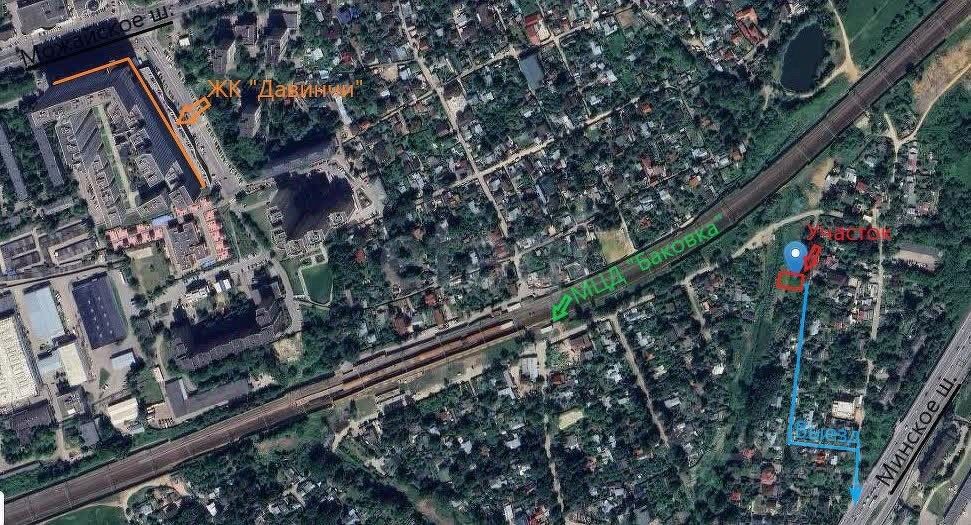 О ЛОКАЦИИ: Участок располагается в 500 м от станции МЦД ''Баковка''. Для автомобилистов удобный выезд на Минское шоссе, удаление 6 км до МКАД. 13 мин. пешком до ближайшего детского сада, 14 мин. до взрослой поликлиники, 20 мин. до Одинцовской лингвистической гимназии. Также в шаговой доступности продуктовые магазины, кафе, аптеки, салоны красоты и фитнес клубы.