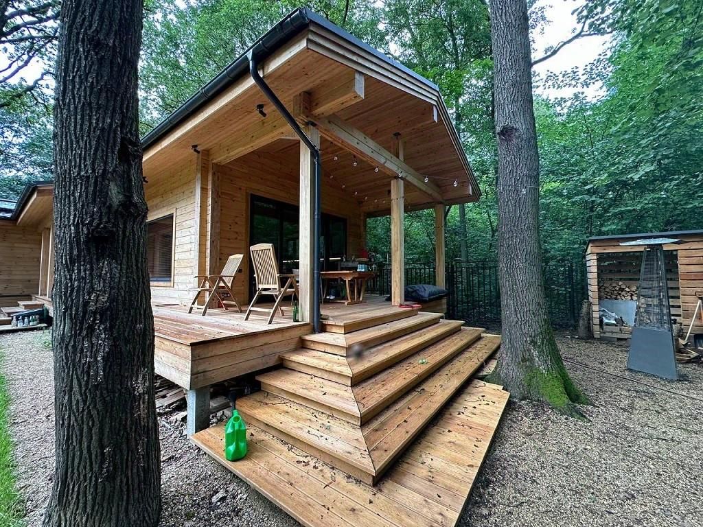На участке уже возвели небольшую современную баню из клееного бруса с гостевым блоком террасами и панорамным остеклением, так же есть отдельное строение для персонала, хранения и хоз. Нужд., отдельно расположена котельная.