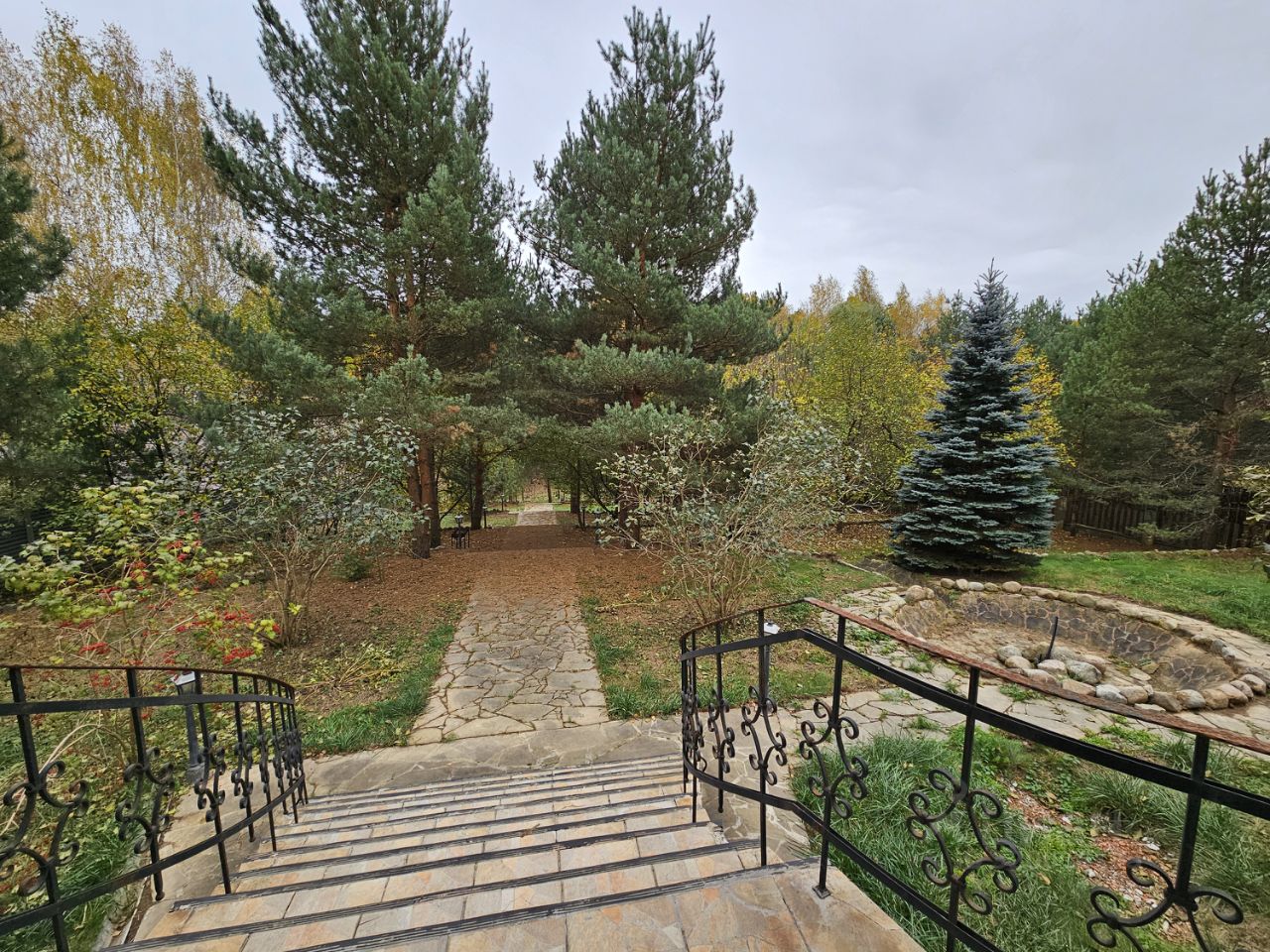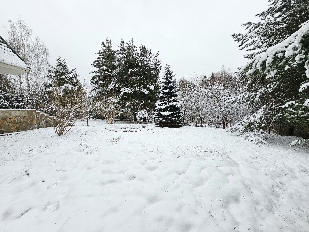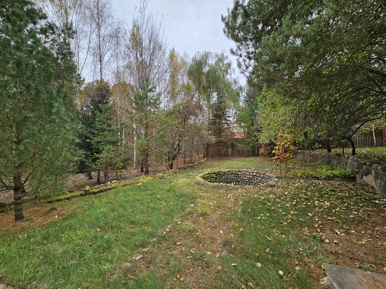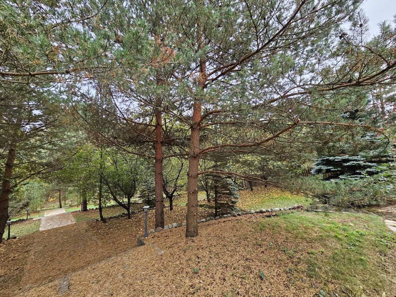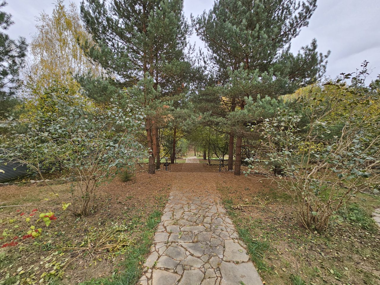Здесь созданы все условия, чтобы сбежать от городской суеты и насладиться единением с природой. Размер лесного участка — 66х30 метров. На просторной территории высажено множество деревьев: вечнозеленые высокие сосны, пушистые ели, дубы и клены, а также несколько яблонь. В солнечную погоду они образуют натуральный тент и защищают от жары, но в то же время не препятствуют проходу солнечных лучей и позволяют отлично освещать пространство.