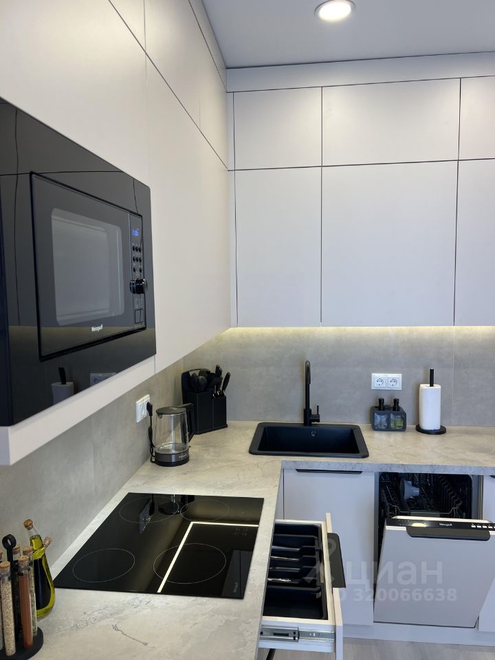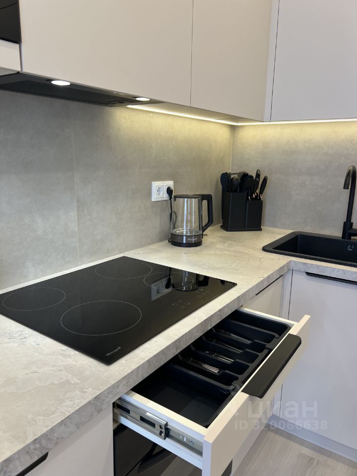 Впервые сдаётся светлая евродвушка с дизайнерским ремонтом. Квартира оснащена всей необходимой техникой и мебелью для комфортного проживания. В кухне установлены варочная панель, духовой шкаф, посудомойка, микроволновка, холодильник, вытяжка (вся техника встроенная), есть посуда и различные кухонные приспособления. Также есть зона отдыха с удобным диваном и телевизором. Из кухни выход на балкон (с теплым полом), где при желании можно оборудовать место для завтраков. Отдельная спальная комната с двухспальной кроватью и ортопедическим матрасом, в спальне расположена вместительная гардеробная с удобной системой хранения. В прихожей установлены 2 больших вместительных шкафа. Совмещенный с/у. Квартира оборудована кондиционером. В квартире продумано различное освещение, что позволяет создавать много вариантов уютной или рабочей обстановки. В доме есть подземная парковка.
