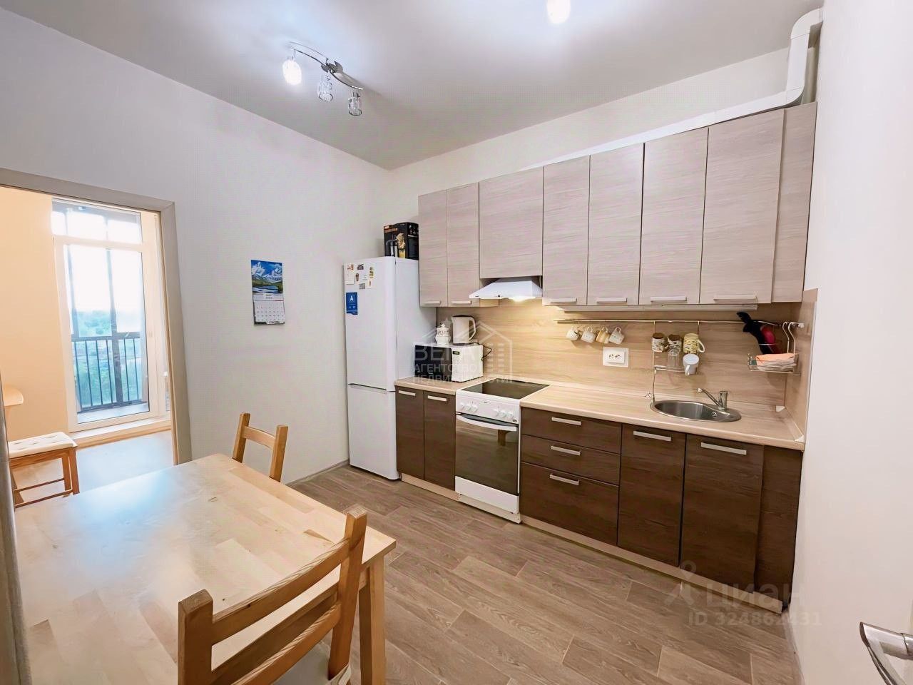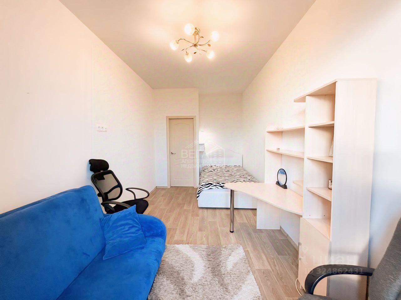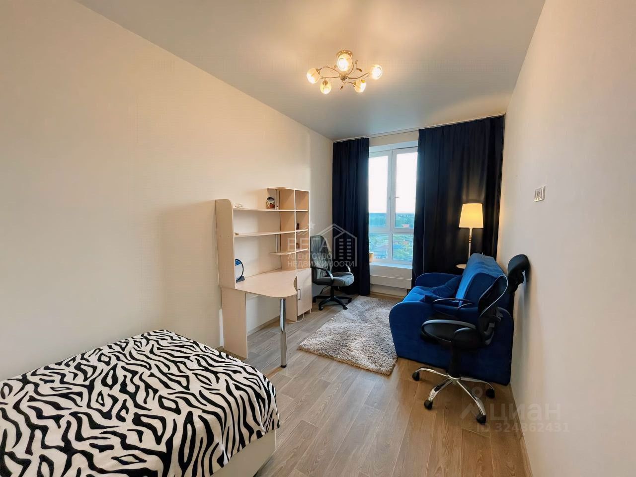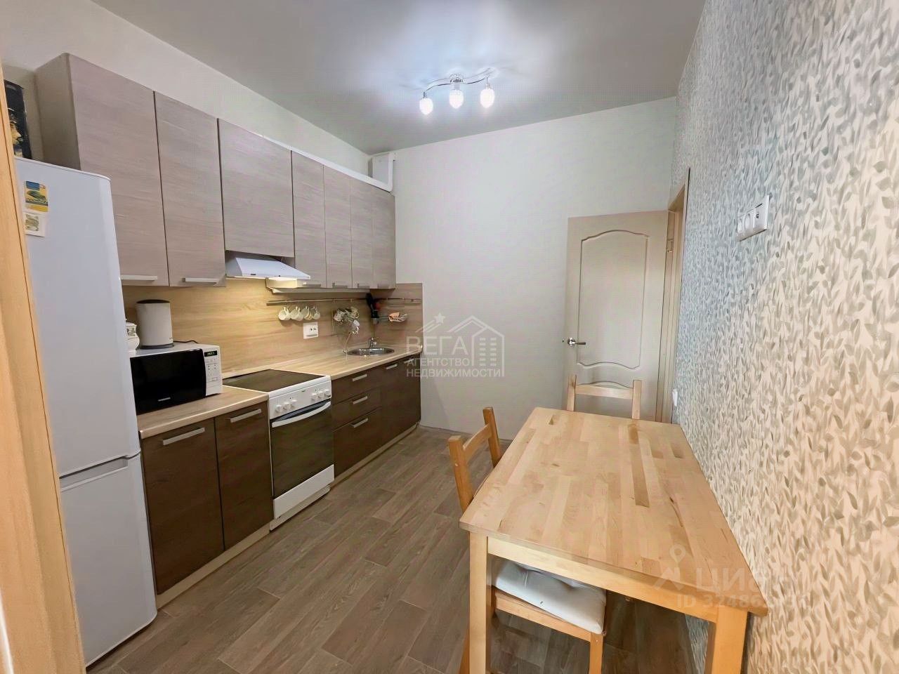 Квартира отличается эргономичной планировкой, идеально подходящей для небольшой семьи. Кухня разделена на две части, что позволило выделить дополнительное пространство под кабинет или комнату. Просторная гардеробная добавляет практичности.
