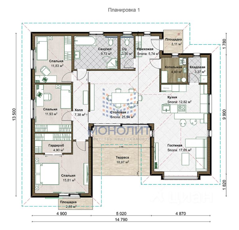 Стоимость данного дома - 12 994 299 руб Площадь 181 м2 (3 спальни, 1 санузел) Размеры 13,5 х 14,8