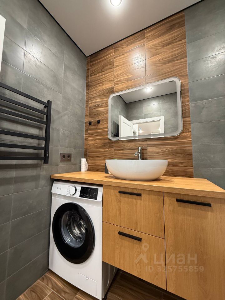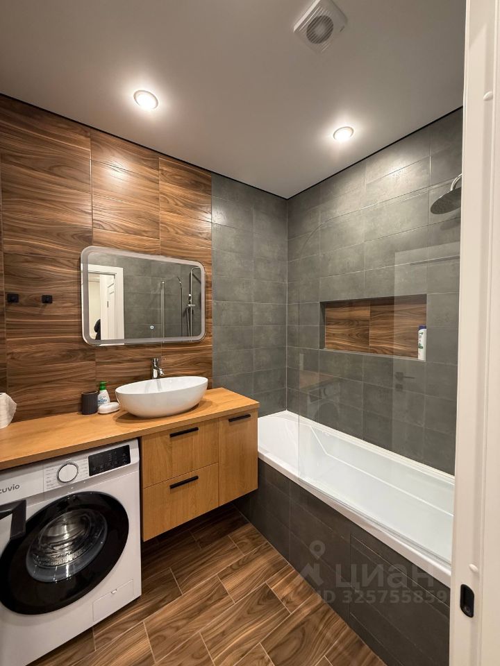 Санузел раздельный. В ванной установлена новая стиральная машина и полноразмерная ванна. В туалете есть шкаф для бытовой химии и швабр.