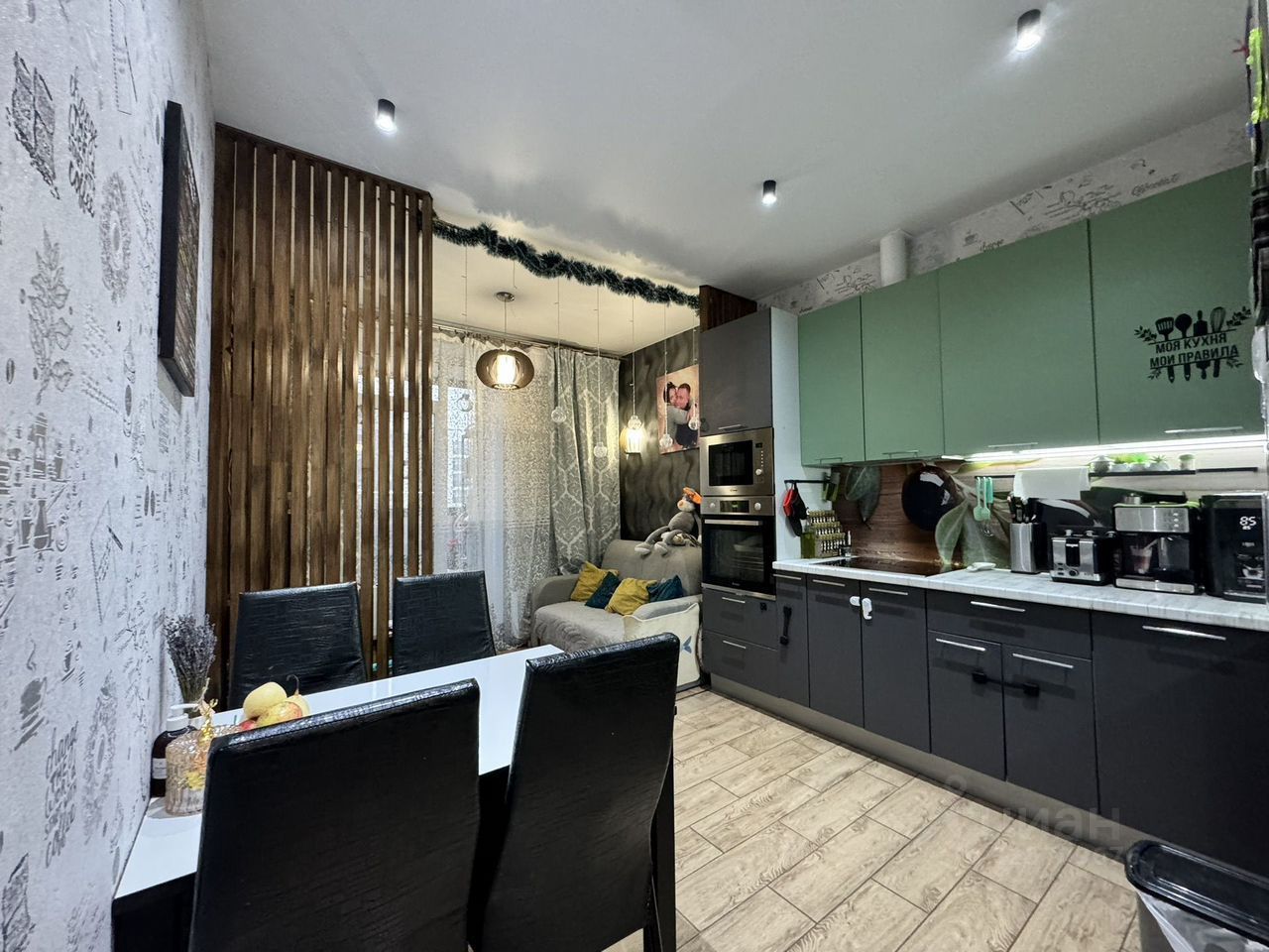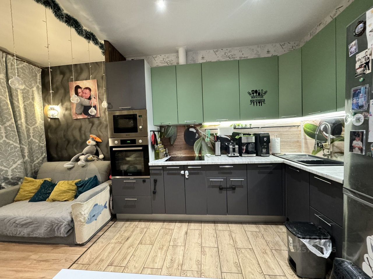 Квартира расположена на 6 из 9 этажей монолитно-кирпичного дома с широким набором опций инфраструктуры города.