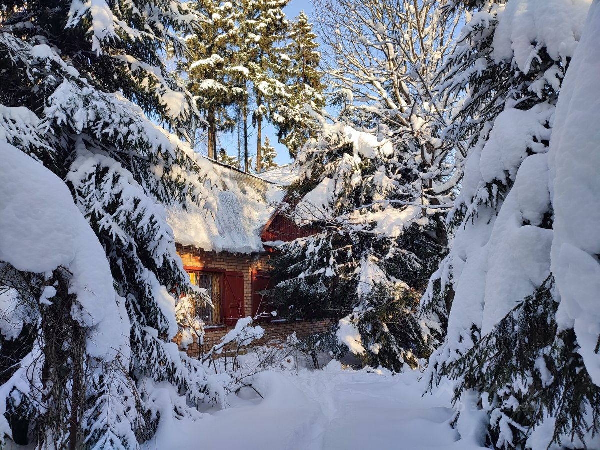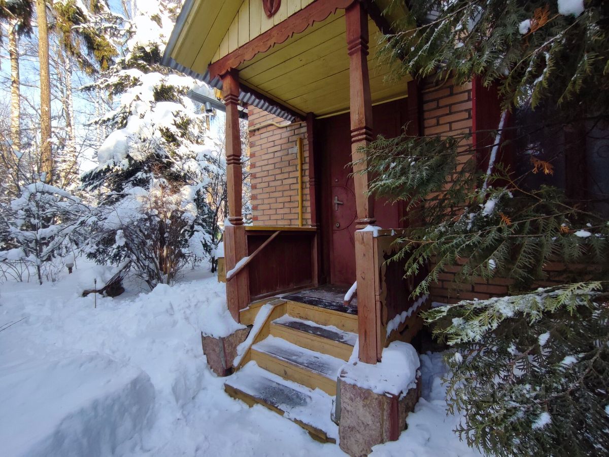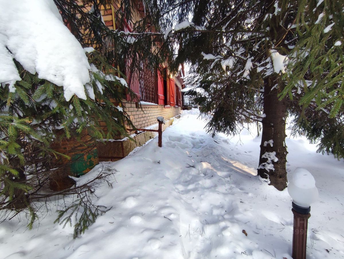 На участке — дом из бревна, облицован кирпичом.